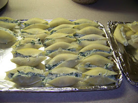 I found spinach on sale and ricotta cheese so I made up some stuffed shells to freeze. Some with spinach, ricotta and parmesan cheese.