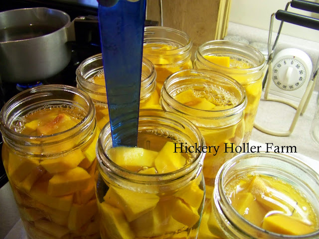 With a plentiful harvest of butternut squash I decided to allow some to remain in storage in the pantry for baking and to can some for convenience in making pies. The Ball Blue Book does not give instructions for canning winter squash or pumpkin but you can find instructions at National Center For Home Food Preservation.